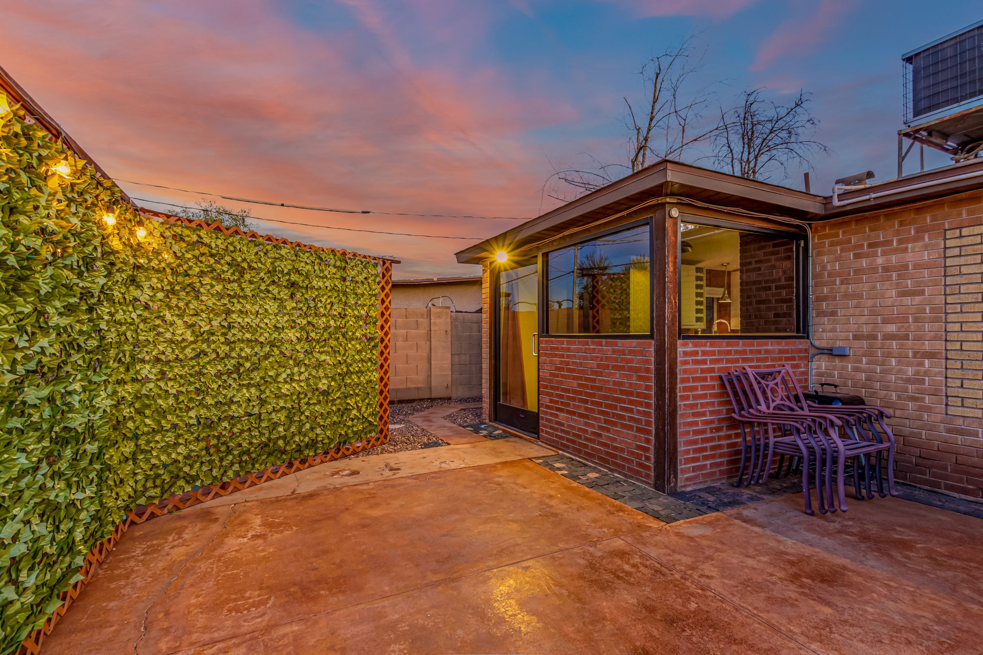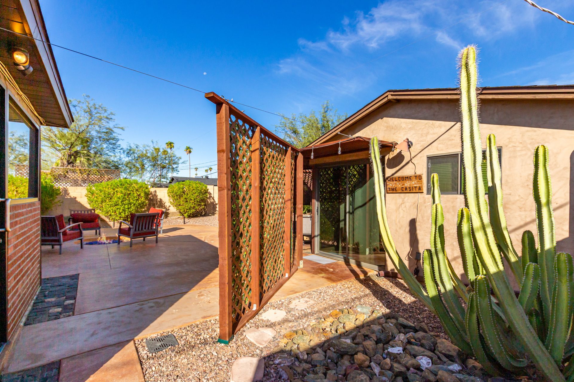 Step outside to discover a tranquil desert garden designed for year-round enjoyment. The expansive patio is outfitted with plush seating and a gas fire pit, creating the perfect setting for evening conversations, morning coffee, or relaxed entertaining under the Arizona sky.