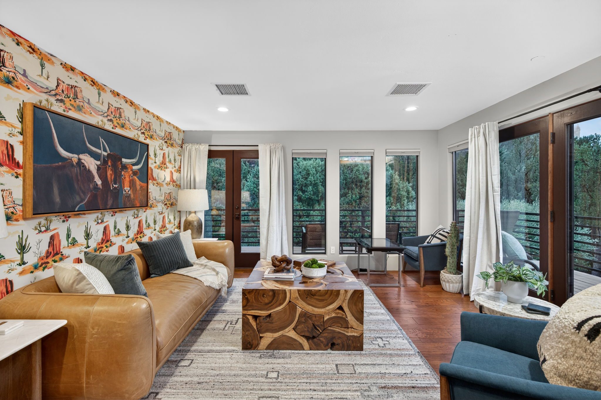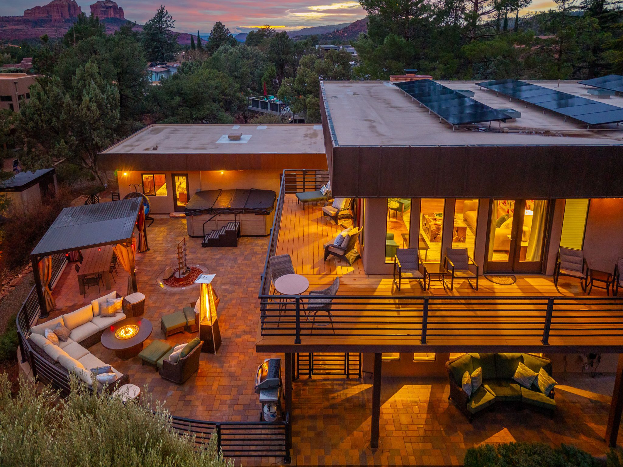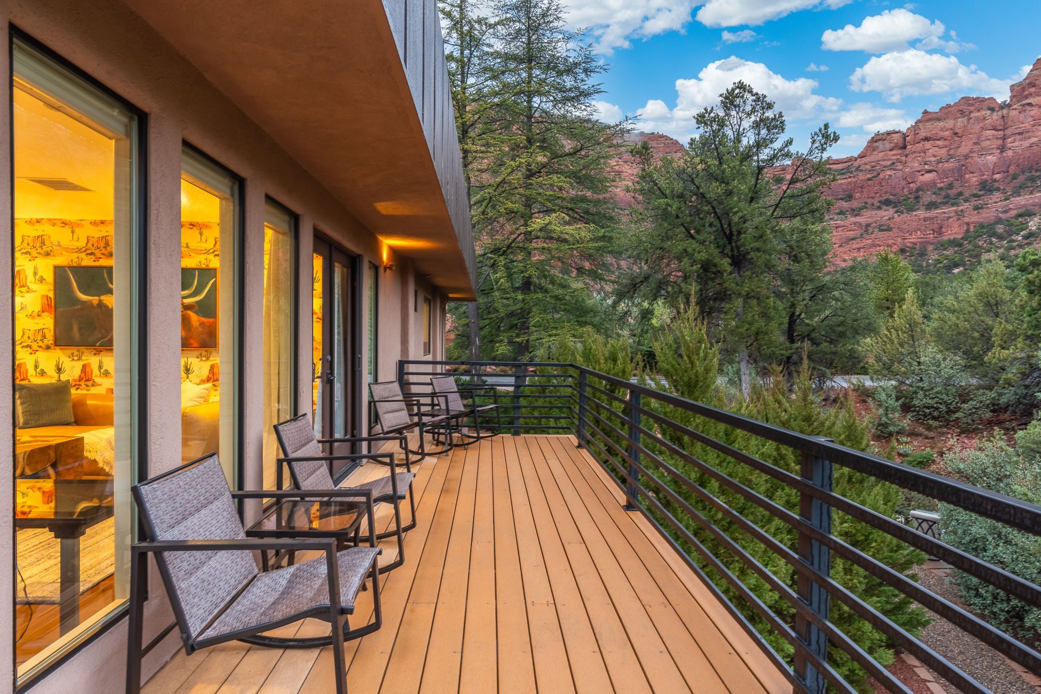 Tucked beneath the world-famous Chapel of the Holy Cross, The Chapel Garden Retreat is a rare Sedona sanctuary that feels inseparable from the red rock landscape itself—cradled by towering formations, wrapped in wooded privacy, and designed to immerse you in the magic of this iconic destination. Crisp modern Southwest design meets warm rustic elegance throughout the home, with new furnishings, thoughtful details, and near wrap-around upper decks that offer sweeping, cinematic views in every direction. From sunrise coffee to sunset wine, this retreat quite literally says “Sedona” like no other.